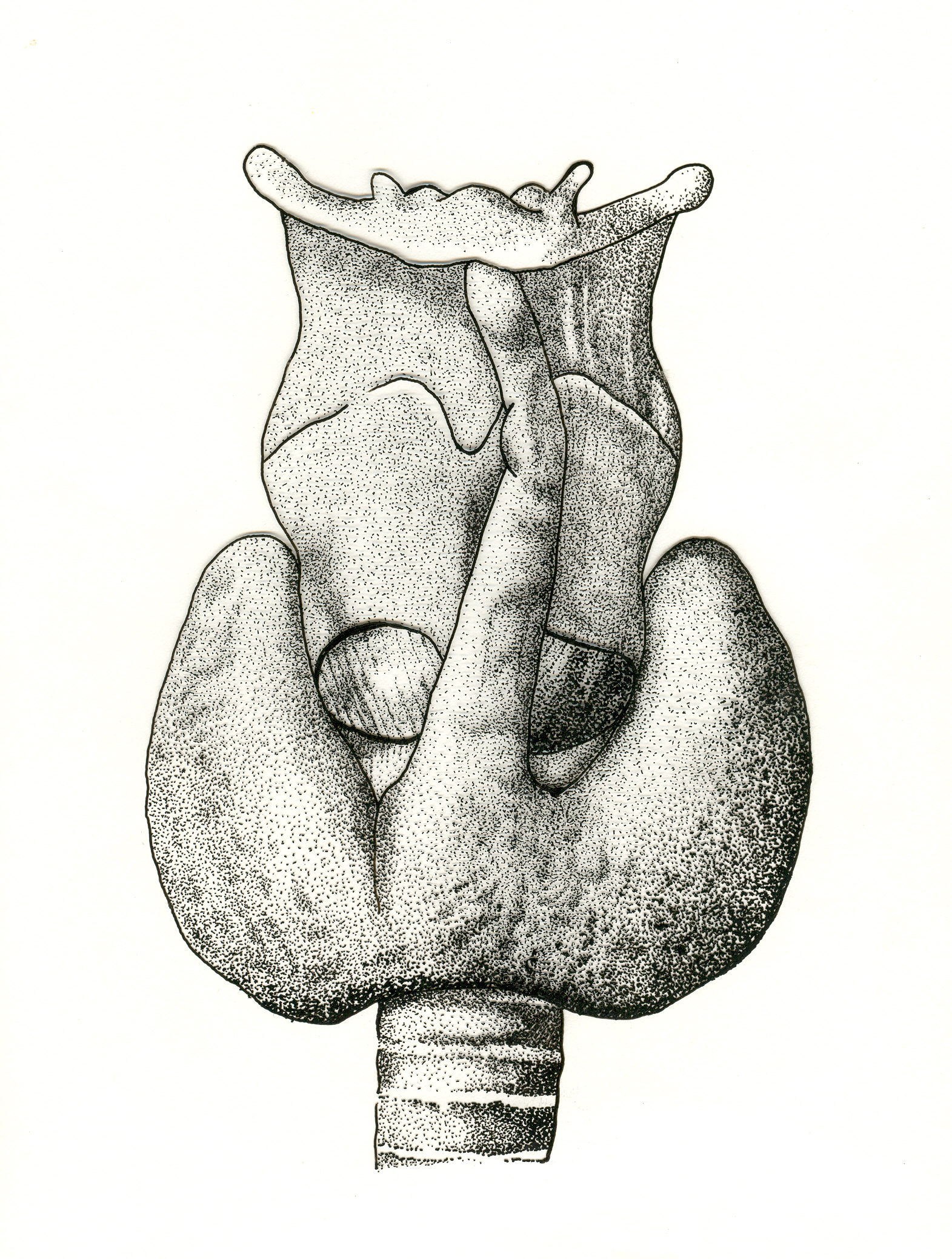 This graphic by artist David Stefaniak depicts the young thymus gland inside the upper chest cavity. (Click on it to enlarge) Variously called the “angelic gland” in Gray’s Anatomy, the thymus is rather large up until about the age of puberty when it shrinks allowing the guileless child to lose its angelic quality as it matures so that it can live in the coarser “fallen” world without being crushed.